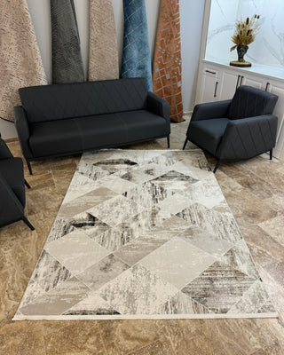 Hera Geometrik Desenli Makine Halısı Gri