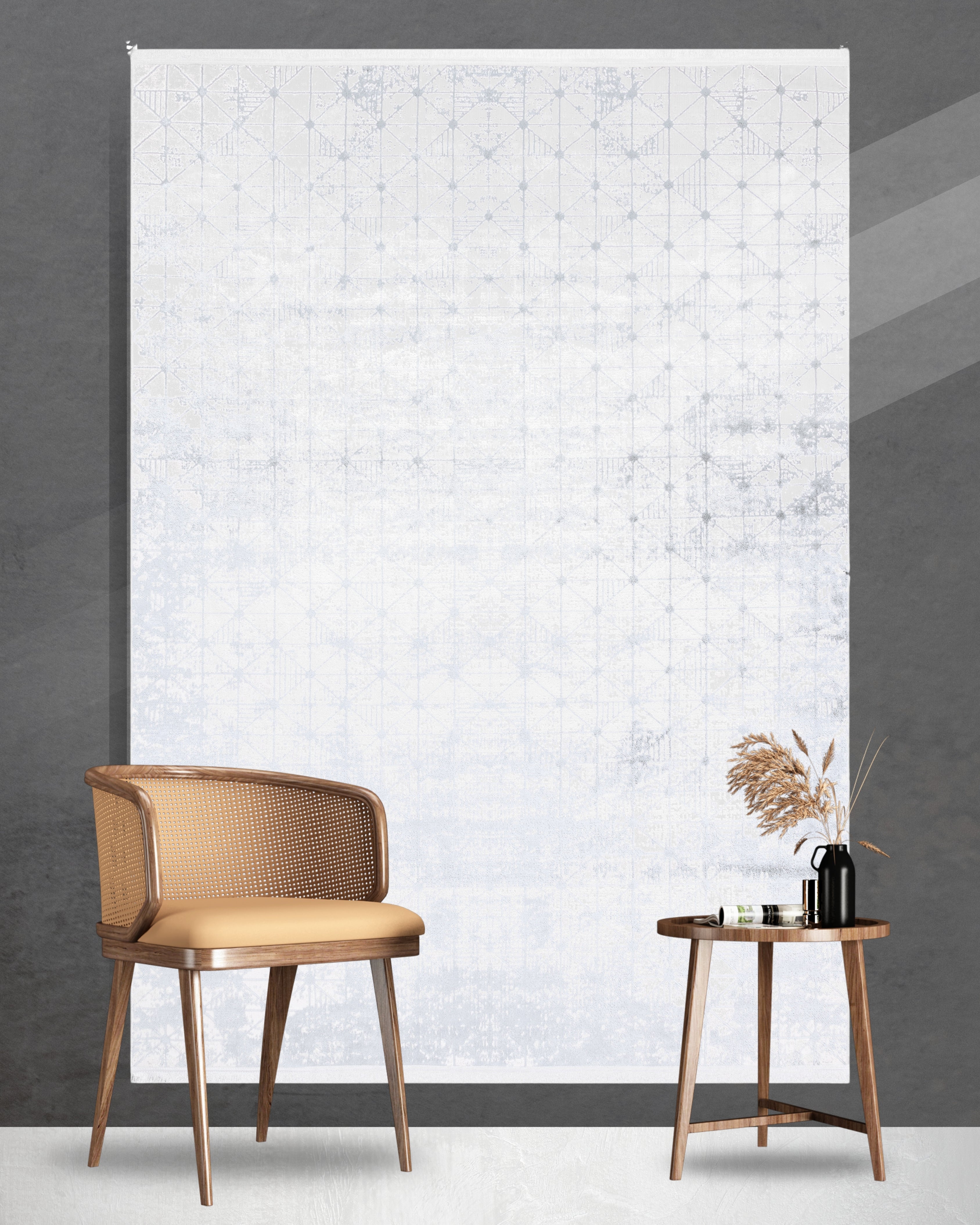 Rüya Çizgi Desenli İnce Makine Halısı Beyaz