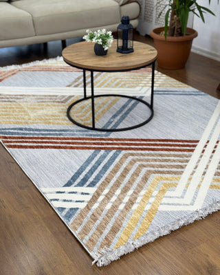 Rüya Çizgi Desenli İnce Makine Halısı Bej