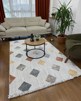 Nova Sade İskandinav Desenli Makine Halısı Beyaz