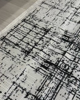 Rüya Sade Desenli İnce Makine Halısı Siyah Beyaz