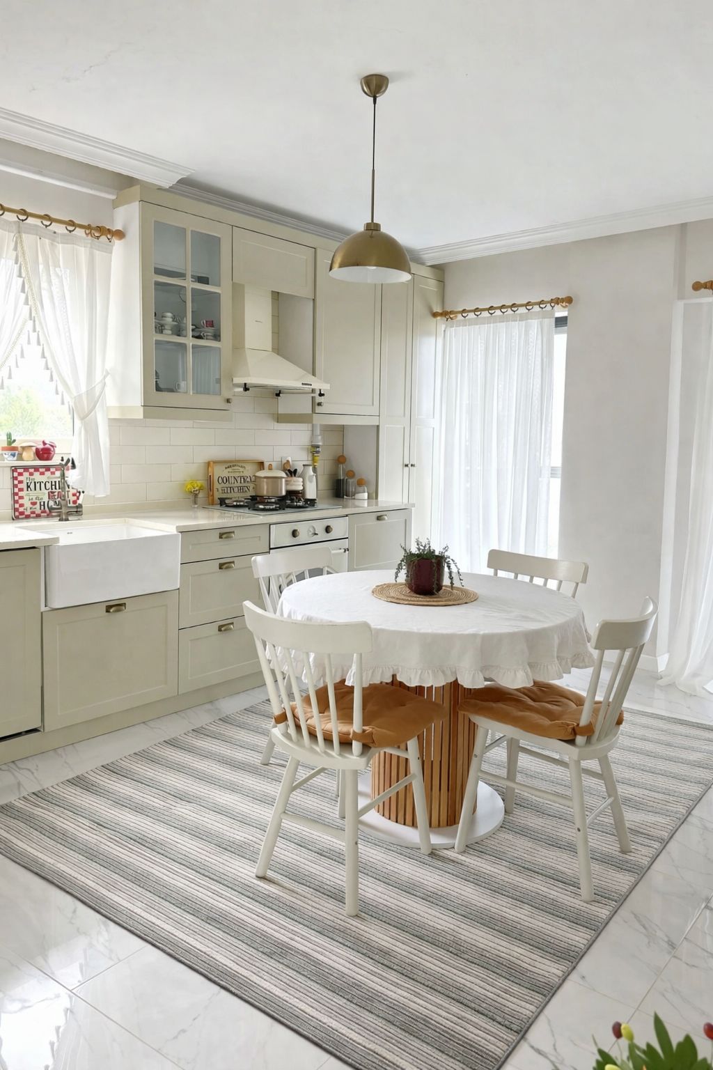 Özel ölçü ile mutfak masasına tam uydurduk. Ada kilim temizlemesi çok kolay.