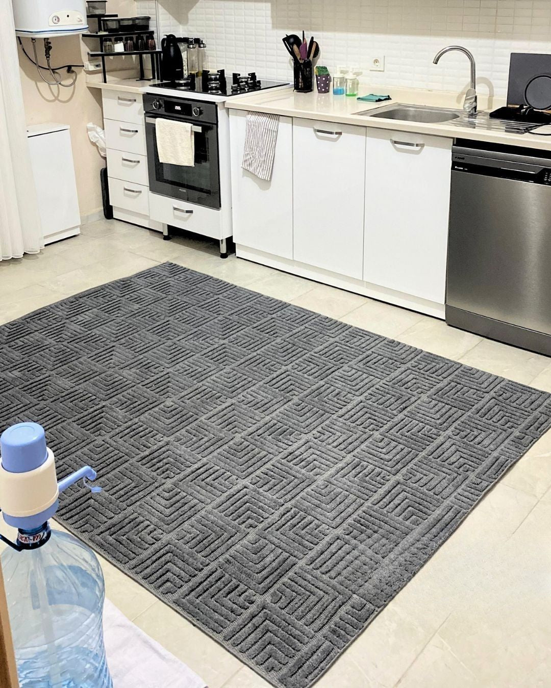 Defne Geometrik Desen Makine Halısı Antrasit