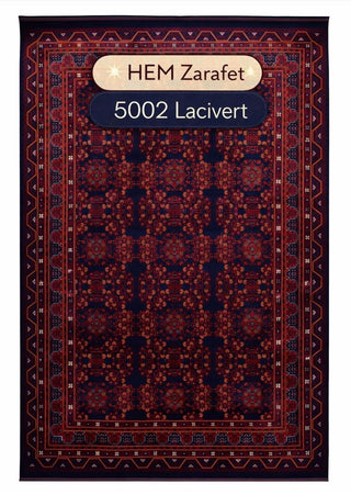 Afgan Desenli Makine Halısı Lacivert