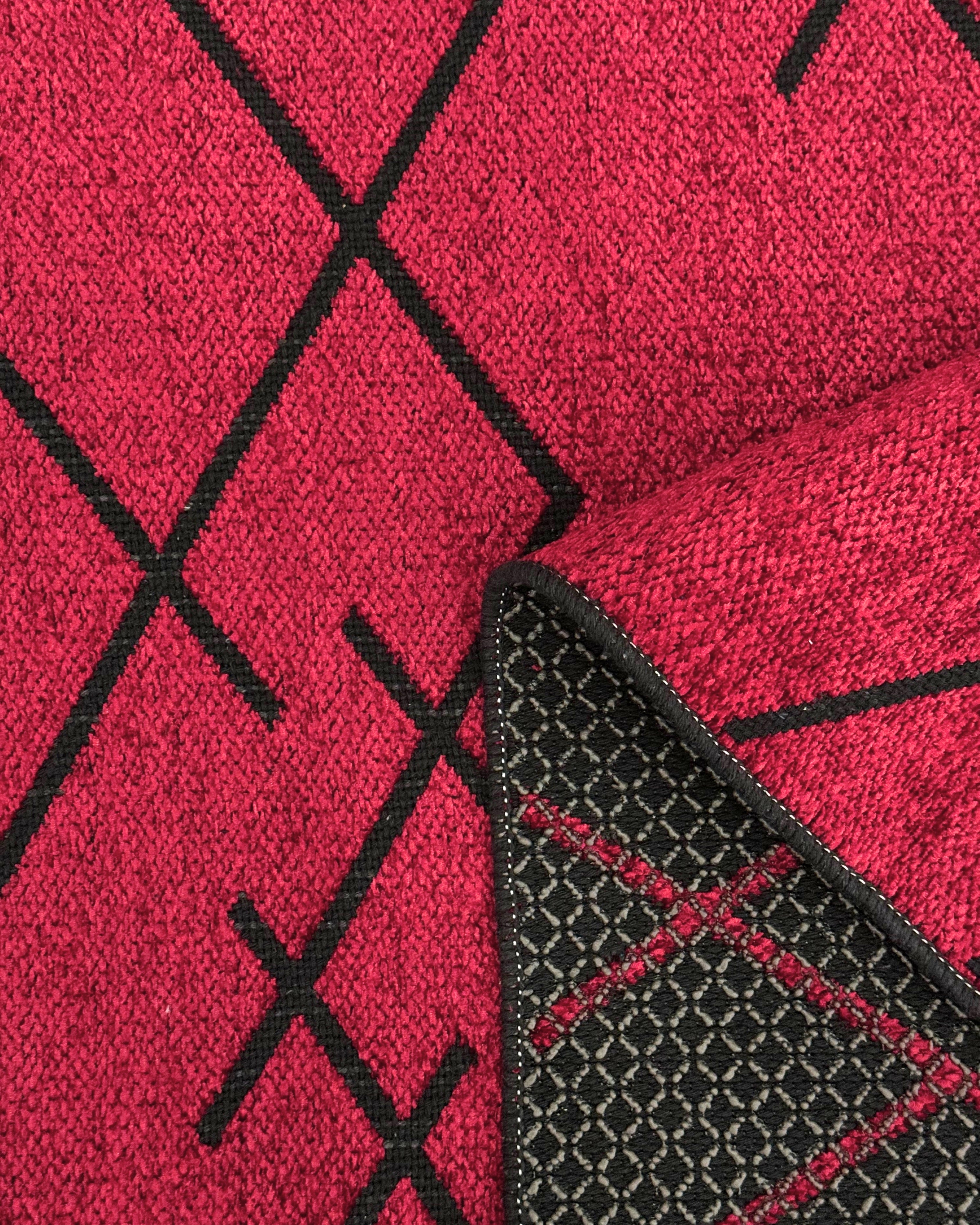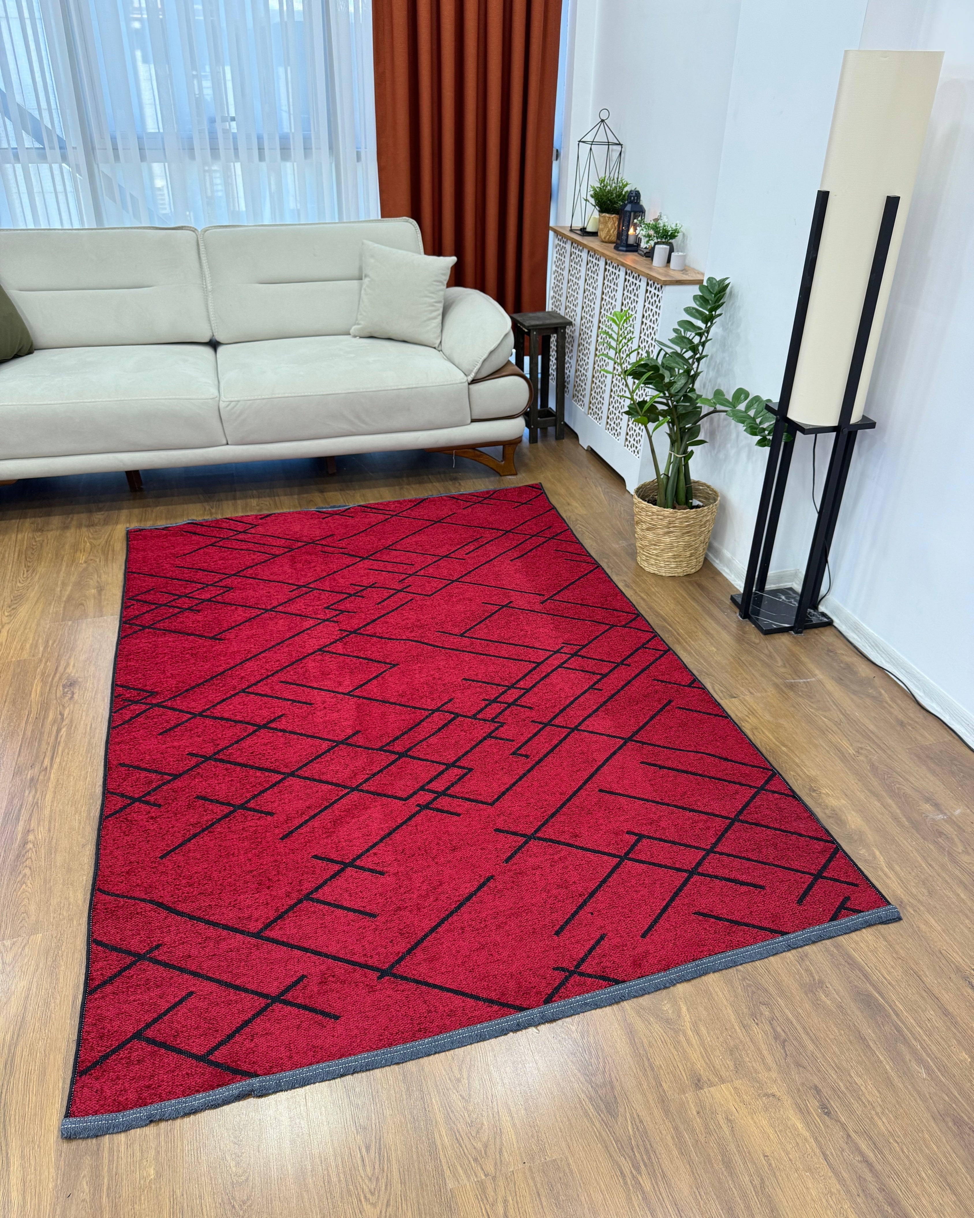 Multi Şönil Çizgi Desenli Halı Kırmızı