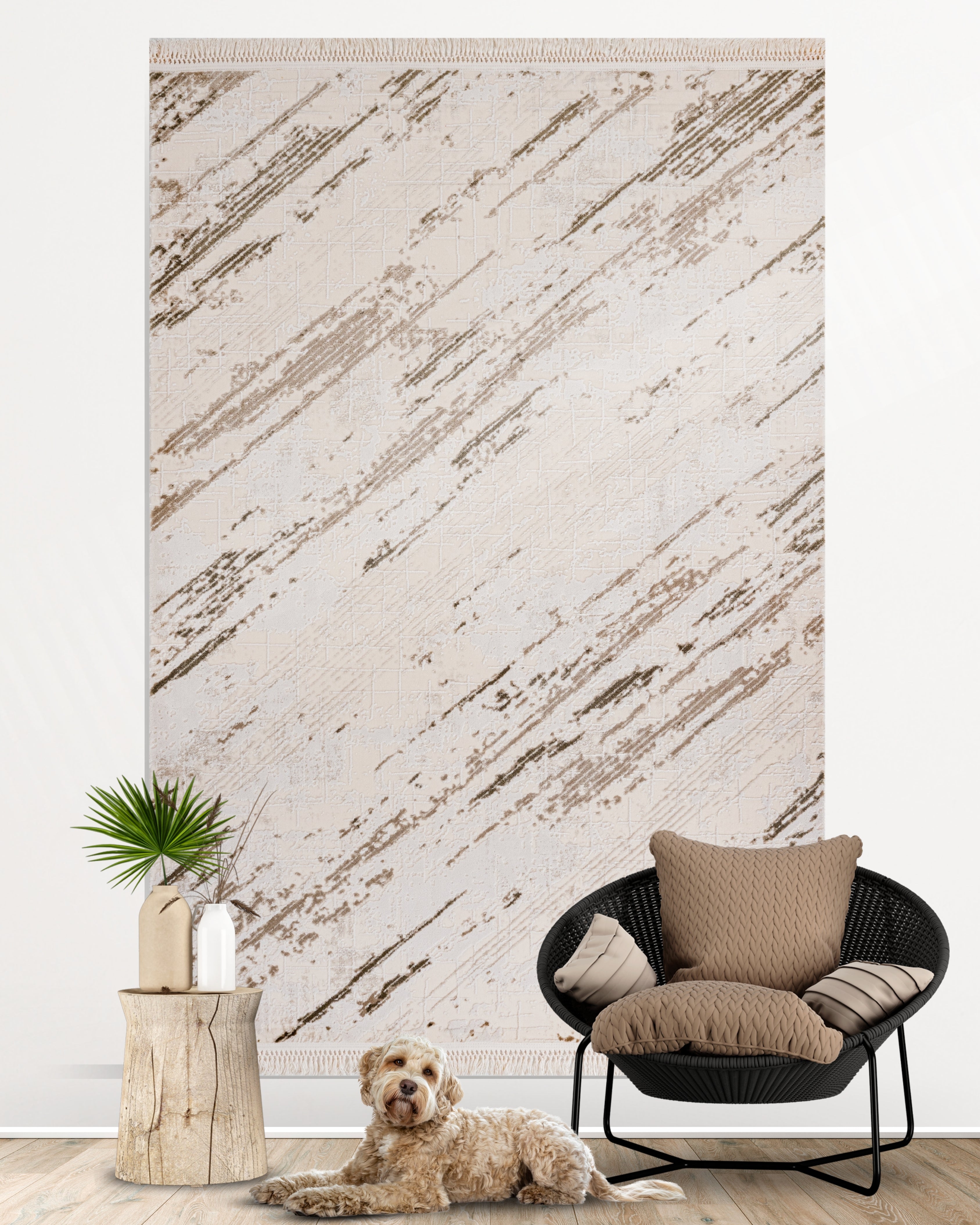 Pare Serisi Modern Desenli Makine Halısı Bej