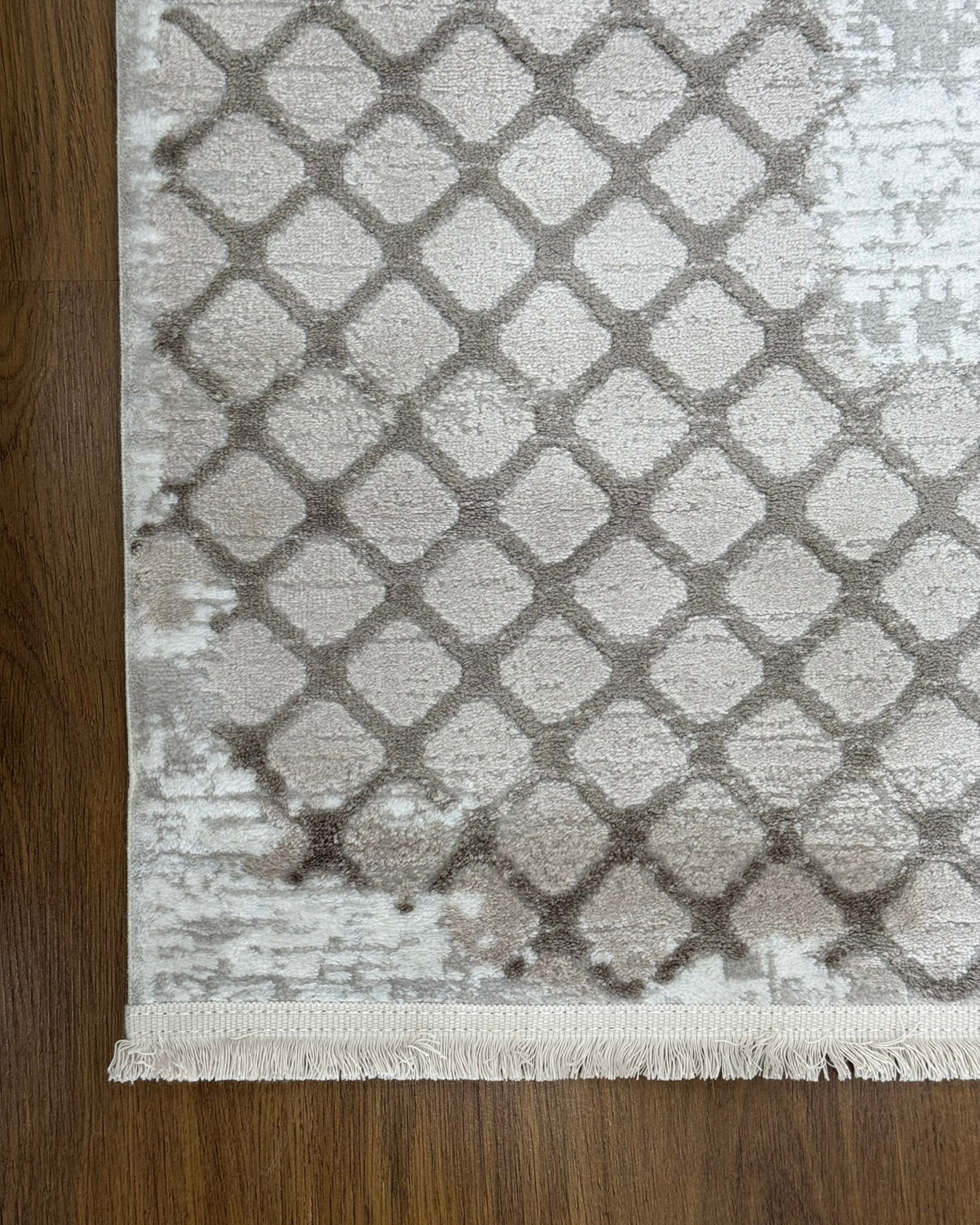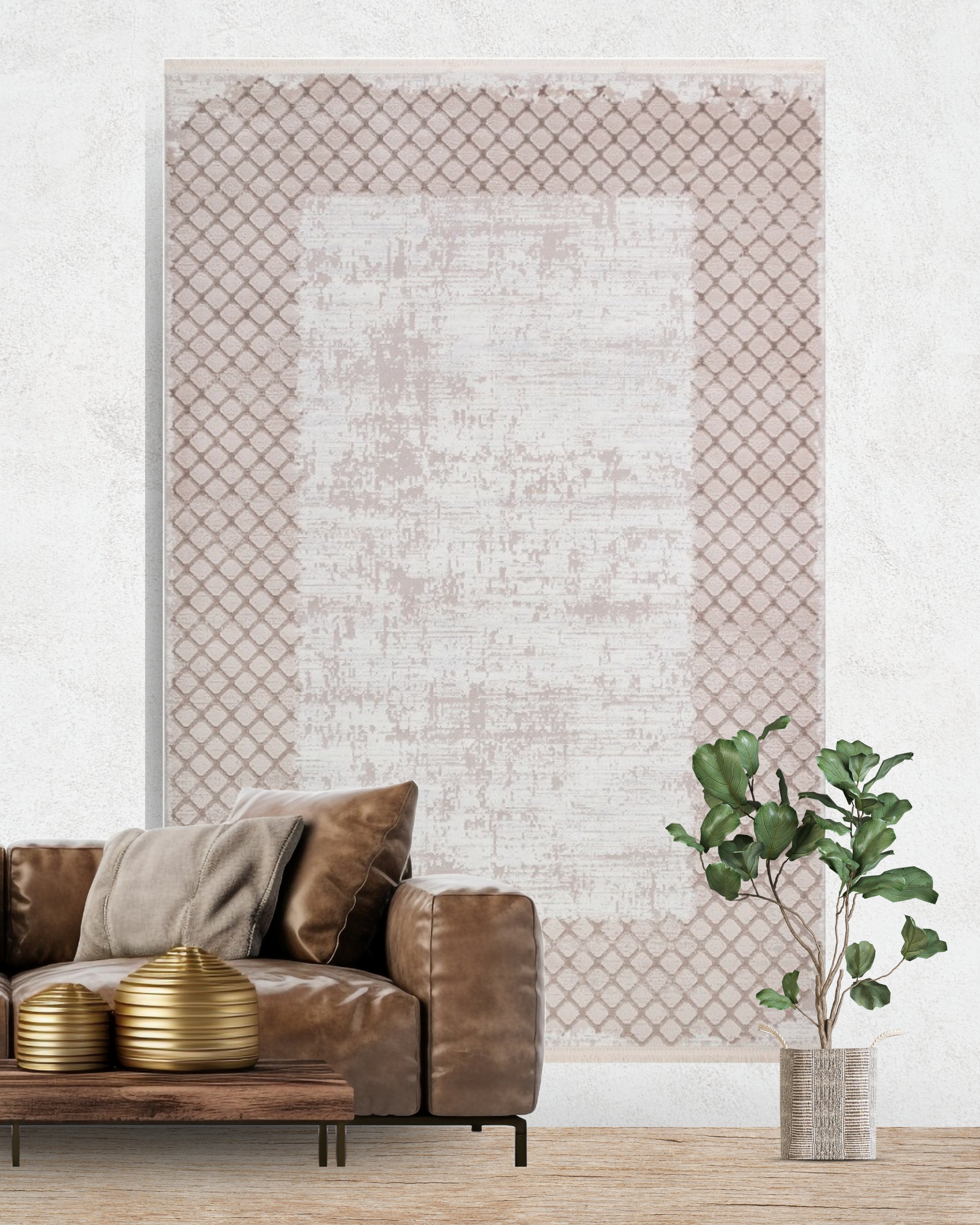 Lucia Serisi Eskitme Çerçeve Desenli Makine Halısı Kahve