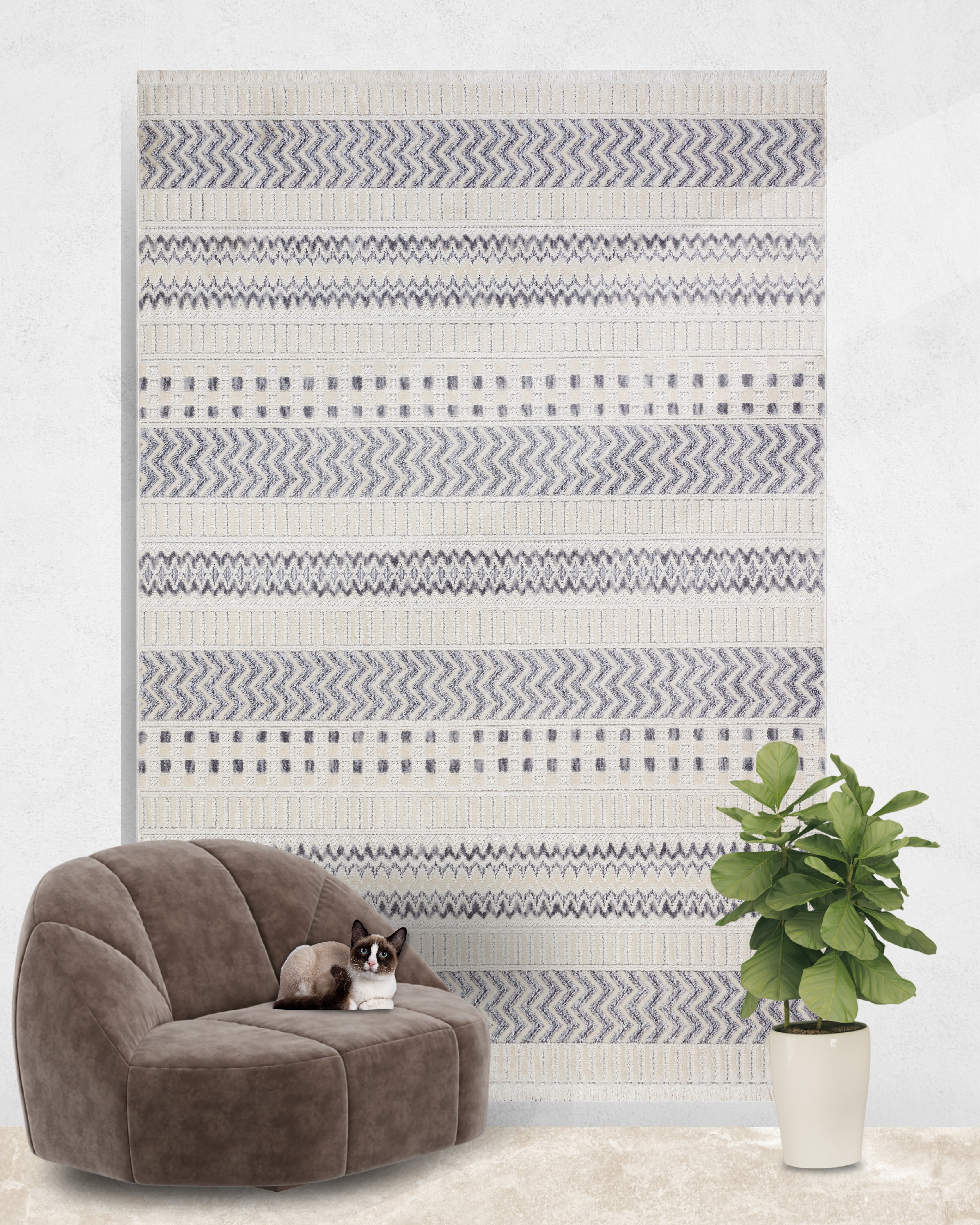 Nova Soft İskandinav Desenli Makine Halısı Gri