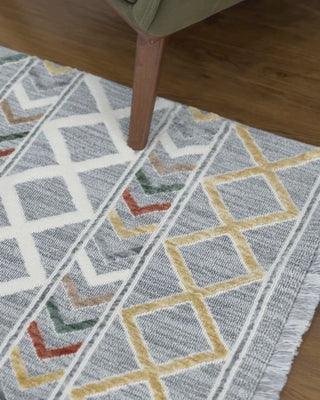 Calvio Serisi Üçgen Desenli Makine Halısı Gri