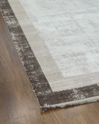 Lucia Serisi Eskitme Çerçeve Desenli Makine Halısı Gri
