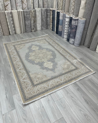 Verona Kalın Çerçeve Desenli Makine Halısı Bej
