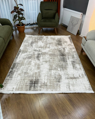 Verona Eskitme Çerçeve Desenli Makine Halısı Gri