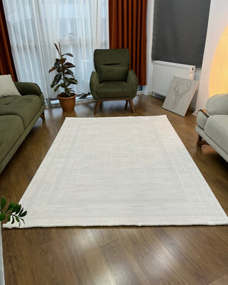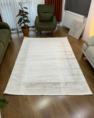 Verona Kalın Çerçeve Desenli Makine Halısı Krem