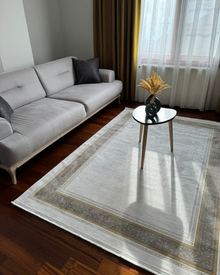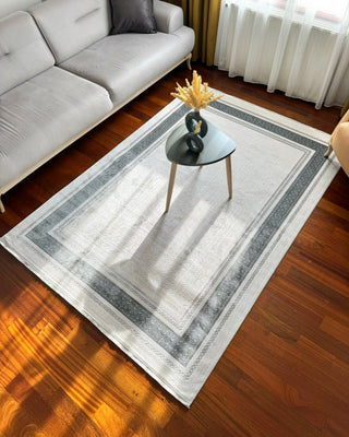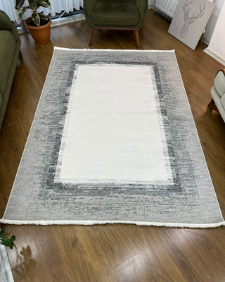 Verona Kalın Çerçeve Desenli Makine Halısı Gri